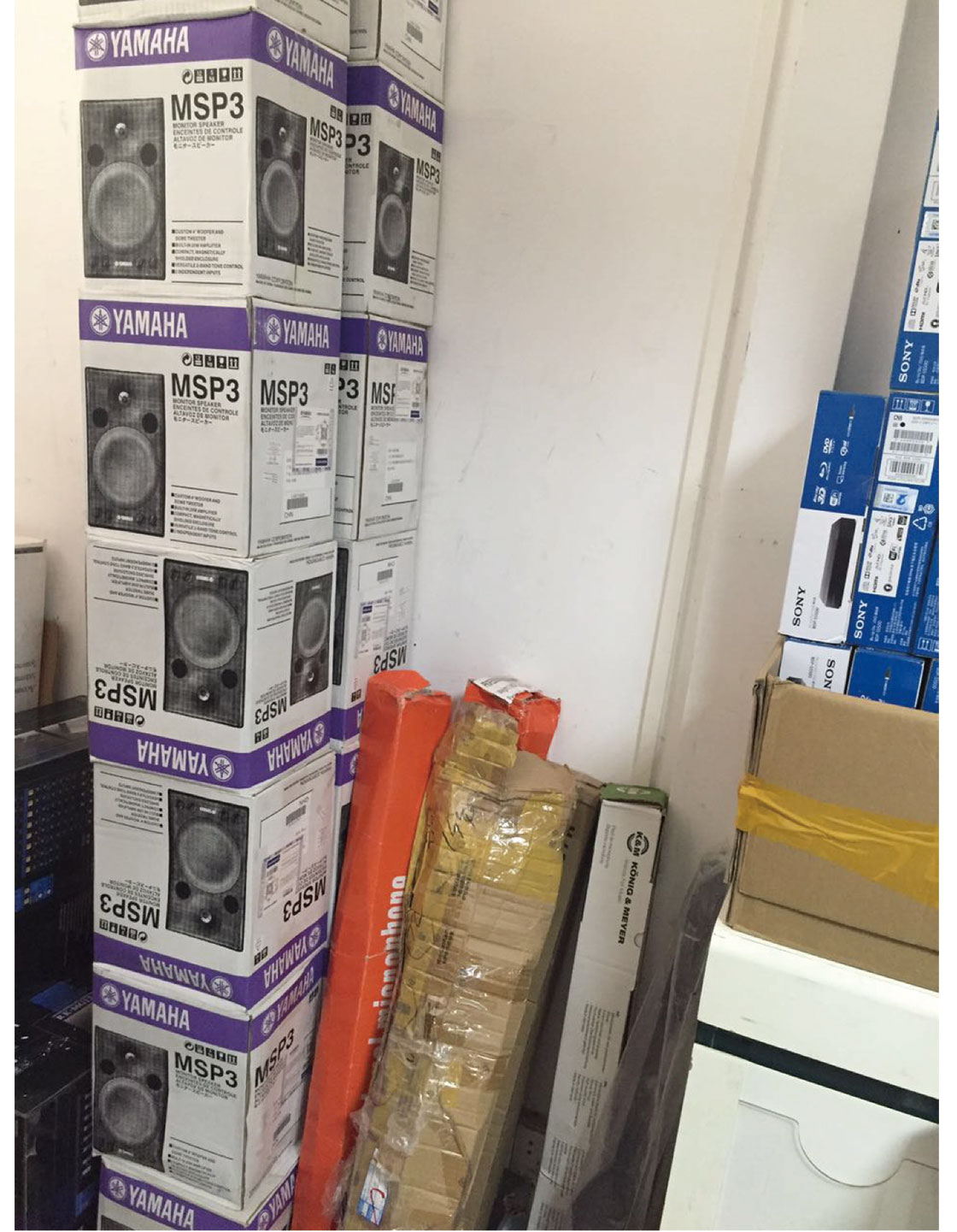環球音響網倉庫是國內較大的進口專業音響倉庫。倉庫常備有100余個進口專業音響品牌,產品數量2000余件。包括JBL、EV、Martin Audio、NEXO、EAW、Wharfedale、HK AUDIO、BOSE、BMB、DAM、YYAUDIO、CROWN、QSC、SHURE、Sennheiser、BBS、AKG、鐵三角、SOUNDCRAFT、YAMAHA、Allen&Heath、DBX、SABINE、ASHLY、KELEK等。常備產品包括雙15寸、15寸、12寸、10寸專業音響,雙10寸線陣音響,12寸返聽音響,12寸、10寸卡包音響;功放、話筒、調音臺、處理器、均衡器、反饋抑制器、光束燈、帕燈、激光燈、燈控臺、等設備。