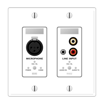 在一個標準的美的電器接線盒上每個RAD坐騎,通常分散在整個設施。標準的CAT 5電纜和終止傳輸四路數字音頻通道 - 兩個通道在每個方向 - 以及電源,接地,并通過萊恩的專有RAD網絡通信信道。