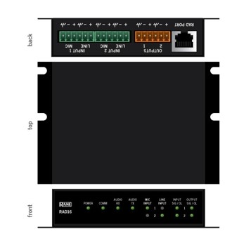 RAD16 - 雙麥克風,線路輸入/雙線路輸出Euroblocks在表面安裝盒