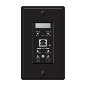 輸入/播放和輸出/錄制信號存在和過載指示燈提供方便“是計算機發送USB音頻?”在壁板故障排除幫助。專用的藍色連接指示燈亮起時,計算機操作系統識別RAD27作為聲卡。當與任何HAL使用,連接的指標是可讀的,可編程的鹵素燈軟件。這使得在HAL系統操作,一旦USB音頻電纜插入,如降低屏幕和轉彎通過以太網控制命令或觸點閉合投影機。