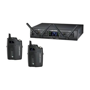 ATW-RC13機架安裝接收器的底盤,ATW-RU13 X2接收單元和ATW-T1001 UniPak發射器X2。選擇一個無線麥克風要點或電纜來完成系統。
