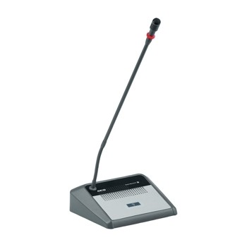 MCS 221代表話筒單元提供一個固定的鵝頸麥克風。通過麥克風和揚聲器集成在麥克風單元中的最佳音頻質量的音頻傳輸的音頻。個別特殊功能可以選擇與殼體底部配置開關,使每個麥克風單元能夠被確定后作為例如亞會長單位。根據開關的麥克風單元的位置數的最大開放代表話筒單元數(非限制)或不,語音操作是允許或不允許,麥克風單元可以被打開,所有的操作模式或可清除,麥克風按鈕是活躍在語音操作或鎖定。根據所選擇的工作模式的主席單元,麥克風可以打開通過麥克風按鈕或聲音控制。麥克風單元連接在一個菊花鏈中。耳機可以連接到杰克插座在后。