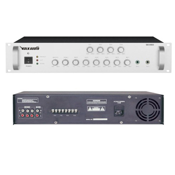 采用先進高效功率放大電路,設有2路話筒輸入,3路線路輸入,1路輔助輸出, 電壓輸出為70V/100V,定阻輸出為4-16Ω,輸出功率為500W,輸出頻響范圍為100~16KHz;每路輸入音量可獨立控制,帶有高低音音量調節;話筒1設為最高優先功能,自動抑制其他輸入信號;設備設有異常工作保護警告功能,當輸入信號過大、負載過重、溫度過高、線路短路時,對應的指示燈提示,有極高的可靠性。 3U標準機箱設計,鋁合金面板,美觀實用。箱體尺寸485*132*464mm,電源功耗為850W