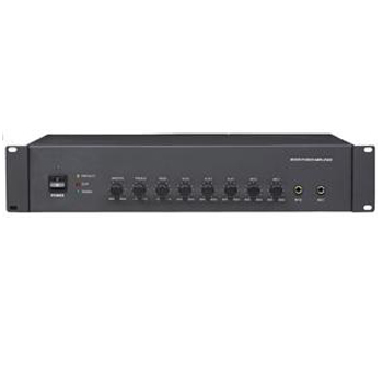 采用先進高效功率放大電路,設有2路話筒輸入,3路線路輸入,1路輔助輸出, 電壓輸出為70V/100V,定阻輸出為4-16Ω,輸出功率為120W,輸出頻響范圍為100~16KHz;每路輸入音量可獨立控制,帶有高低音音量調節;話筒1設為最高優先功能,自動抑制其他輸入信號;設備設有異常工作保護警告功能,當輸入信號過大、負載過重、溫度過高、線路短路時,對應的指示燈提示,有極高的可靠性。 2U標準機箱設計,黑色鐵面板,美觀實用。箱體尺寸485*88*340mm,電源功耗為204W