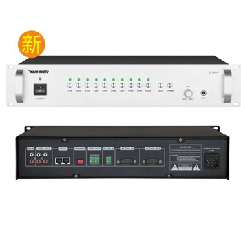 10路短路觸發(fā)控制信號獨立輸入(可連接消防信號),10路短路信號輸出控制10分區(qū)矩陣器;1路全區(qū)觸發(fā)輸入,2路緊急輸出分別控制電源時序器及信號發(fā)生器;1路最高優(yōu)先音頻信號輸入,2路音頻輸出;支持本地及超遠程(1Km)分區(qū)尋呼功能,實現(xiàn)分區(qū)便捷、靈活性;面板采用輕觸式開關(guān),設(shè)有10分區(qū)獨立控制、全區(qū)控制及4音階的鐘聲提示音控制,方便操作;2U標(biāo)準(zhǔn)機箱設(shè)計,鋁合金面板,美觀實用。箱體尺寸485*88*340mm,電源功耗為15W