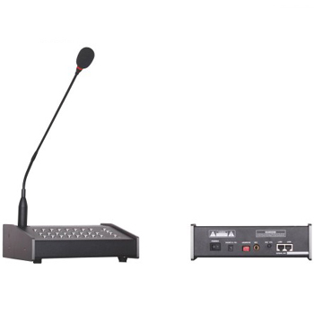 設有8組分區選擇,每組可管控16個分區獨立開關;具有全開、全關及4音階的鐘聲提示音控制按鍵便于操作;一個鵝頸式麥克風輸入,設有獨立按鍵開關控制;支持一路本地音源輸入,音量大小可調節;音頻采用平衡傳輸方式,具有良好信號質量和傳輸距離,最遠距離可達1KM;傳輸線采用五類屏蔽雙膠線,同時傳輸音頻信號和485控制信號,可實現在遠程控制設備的電源開關與分區進行遠程尋呼;設有一個聯級輸入口,可支持8臺話筒串聯使用;采用黑色金屬箱體,尺寸為:180*130*40;外接24V交流電源供電。