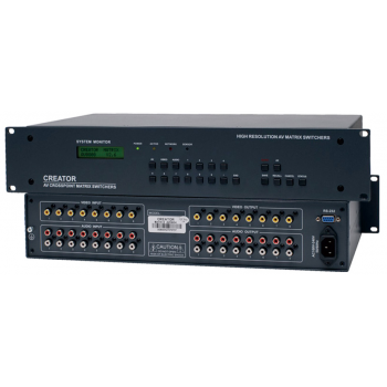 支持8路音視頻信號(hào)輸入,2/4/8路音視頻信號(hào)輸出,輸入、輸出端口采用RCA接口。