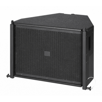 直射式雙10寸低音音箱,梯形的箱體結(jié)構(gòu)(頂部和底部斜切2.25度)設(shè)計,可吊掛在中高音音箱之上,直接與主吊架相連,也可以組成獨(dú)立的低音線陣列,最多允許24只音箱吊掛成弧形線陣列。