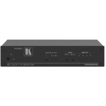 VM?24HC是一款高性能的HDMI信號切換器和分配放大器。該設備接受兩個HDMI輸入中的一個并且分配這個選擇的信號到四個HDMI輸出上。