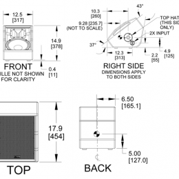 尺寸(英寸/毫米):高度(舞臺(tái)):14.9/378,寬度:12.5,深度:17.9/454,地面角度(仰角):37
