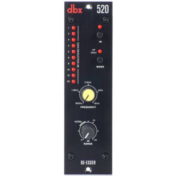 DBX 520將幫助您熟練地馴服過度齒音經常發現在人聲和其他高頻率密集的材料。根據傳說中的dbx 902,DBX 520獨特的特性使得它能夠達到的處理無論在信號電平變化的確切數額。520允許你創造輝煌,脆人聲沒有齒音!