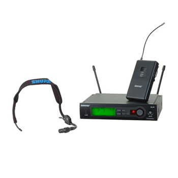 SLX4接收機(jī),搭配SLX1腰包發(fā)射器和30頭戴話筒。