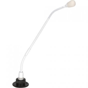 這個(gè)白色的百威PM 18S鵝頸麥克風(fēng)從百威是講臺(tái)麥克風(fēng)。雙伸縮管允許幾乎無(wú)限的定位選擇。特別設(shè)計(jì)的背駐極體電容膠囊提供了一個(gè)定制的,有心形拾音模式和高增益反饋前平滑的頻率響應(yīng)。