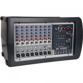 XR 8600d 1200W調音臺與Peavey提供高品質的音頻和通用的功能在一個緊湊的設計數字的影響。它有8個麥克風輸入,每一個都有自己的低噪聲放大器、48V幻象電源支持電容式麥克風。也有10個線路輸入,所以你可以連接其他音頻設備。每個通道有一個3頻段均衡器,監控發送,和信號/裁剪指示器。在通道1-6 25dB的墊,和一個通道1-8靜音開關。