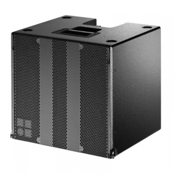 T-SUB 是倒相式低頻音箱,內置一個遠程15" 低頻單元。當使用D12 功放驅動時,可實現d&b SenseDrive的功能。T-SUB 與T10 在不同陣列形式組合中可增加T10 音箱低頻動態余量,例如堆疊形式或吊掛形式,可集中吊掛在T10 數組上面或組成低頻陣列使用。T-SUB 可通過揚聲器兩側的自帶吊掛組連接。連接時,只需將兩側隱藏的吊掛件滑出并展開音箱背部連接件即可。