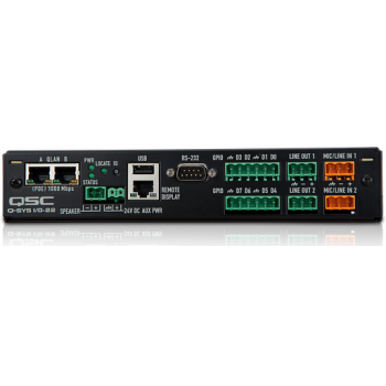 Q系統的I / O單元22是一個緊湊的設計在使用的音頻源和目的地的網絡物理系統的擴展是一個Q輸出,如個人和個人會議系統在A或A室的多室的地點。提供兩個麥克風輸入線和輸出線2號線,在I / O 22是理想的應用,如立法或司法室,會議室,教室,ballrooms,輔助區,貴賓套房,patching和舞臺。