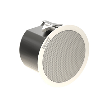 音箱系統將會是兩分頻、全頻吸頂式音箱,帶有4.5英寸低頻換能器還有同軸安裝的3/4英寸開口高頻壓縮驅動單元。驅動連接一個分頻頻率是2kHz的分頻器, 還有一個自復位斷路器以保護驅動。可涂層的音箱障板是由UL 94V-0 ABS 材料構成。后箱體是防腐鍍鋅鋼構造,具有彈簧式dro-StopTM安裝輔助扣。它還包括了隱藏式的終端盒,上面的鎖定連接頭可拆卸,螺栓型端子則為了保護有環通功能的導線終端。夾緊機構將能提供溢放口用于高壓電纜或導管。這套系統的振幅響應是75Hz至13.5kHz(-10dB),低阻抗(8歐)輸入能力是22V RMS。處于1W/1m的靈敏度是91dB SPL(125 Hz到12.5kHz, 1/3倍頻帶)。系統的錐形范圍是140°(500Hz至6kHz ±65°)。標稱系統阻抗是8歐(低阻抗設置中)。系統配備了16W高性能自耦變壓器,在70.7V或是100V的分布式音頻系統中可使用,另外70.7V分布系統中可用30W,15W,7.5W, 3.75W抽頭(100V系統中可用16W,8W,4W,2W抽頭)。前面的擋板設有一個正面抽頭切換開關,隱藏在可拆卸的網罩里,可以方便的選擇自耦變壓器和低阻抗設置。系統還包括了兩個支撐橋軌和兩個墊片支撐橋軌。它的面板直徑是8.31英尺(211.0mm),箱體深度是5.50英尺(139.7mm),重量為6.4 lbs(2.9kg)。如果音箱要安裝在現存的一個大的后箱體里或是安裝在一個較長直徑為11英寸的(279mm)墻孔中,可選的外殼轉換器/調整環就可以用上了,在干式墻或者石膏到位前,新的構筑支架便可用于安裝音箱系統。如果要求黑色的C4吸頂音箱,那么你也可選擇黑色的網罩來搭配顏色。