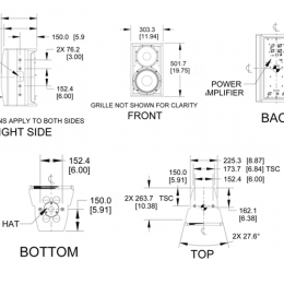 換能器: 低頻 - 1x10英寸錐盆;中頻 – 1x8英寸錐盆;高頻 – 1x1英寸開口,1.75英寸音圈壓縮驅(qū)動