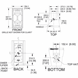 換能器: 低頻 - 2x10英寸錐盆;中頻 – 1x1.4英寸錐盆,3.5英寸音圈壓縮中頻;高頻 – 1x1.4英寸開口,1.75英寸音圈壓縮驅動