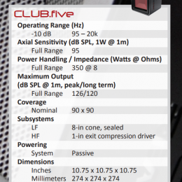 CLUB. 5以1立方英尺(0.03立方米)體積的箱體達到令人滿意的聲壓級,將舞池體驗延伸到其他高功率音箱所不及之處。同樣也配備相應(yīng)的U形支架。
