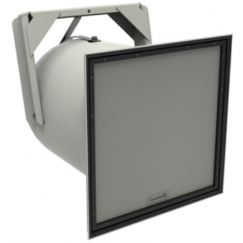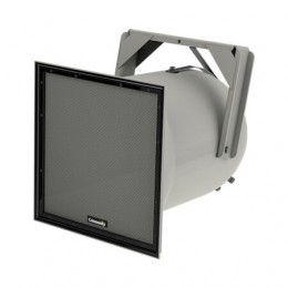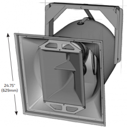 一根是用于低頻,一根是用于中頻/高頻。音箱箱體是雙層密封的淡灰色玻璃纖維,3層耐候型網罩。鋼制網罩粉末涂層經過了專利的富鋅環氧雙層粉末涂層過、程,顏色與箱體顏色相搭配。鋼制的軛式支架粉末涂層同樣也經過了專利的涂層過程。該系統是IP55W的IEC529 IP級別,向下投射角最小值為5°,還有5個1/2” – 13螺紋安裝點。系統的振幅響應是85Hz至20kHz(-3dB),低頻輸入能力是98V RMS,在1W/1m(100Hz-500Hz)和8歐的標稱阻抗下低頻的靈敏度為103dB,中頻/高頻的輸入能力是35V RMS,在1W/1m(400Hz-18kHz)和8歐的標稱阻抗下中頻/高頻的靈敏度為108dB。從1.6kHz至10kHz的標稱覆蓋是60°H×60°V。音箱的尺寸為24.75英寸(629mm)H×24.75英寸(629mm)W×30.75英寸(781mm)D,重量為92lbs(42.2kg)。