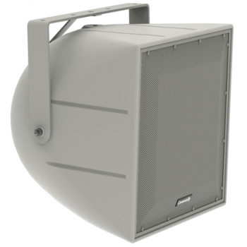 音箱系統(tǒng)是兩分頻全頻設(shè)計(jì),有1個(gè)12英寸(305mm)高輸出低頻單元和一個(gè)1.4英寸(36mm)開口高頻驅(qū)動,同軸安裝到90° X 60°塑模ABS號角。驅(qū)動連接到分頻器,分頻頻率為900Hz。輸入連接是12’(3.6m)SJOW#16-儀表線纜,帶有剝線端。音箱滾塑模線性低密度聚乙烯材質(zhì)可抵抗天氣和紫外線,帶有防水的聚酯網(wǎng)和開孔泡沫支持的1mm多孔不銹鋼網(wǎng)罩。鋼制網(wǎng)罩粉末涂層經(jīng)過了專利的富鋅環(huán)氧雙層粉末涂層過程,顏色與箱體顏色相搭配。箱體包含了5個(gè)3/8”-16索具點(diǎn),提供多個(gè)安裝選項(xiàng)。該系統(tǒng)是IP55W的IEC529 IP級別,向下投射角最小值為5°。系統(tǒng)的頻率響應(yīng)是95Hz至20kHz(-3dB SPL),輸入能力是69V RMS,靈敏度是102dB(125Hz-10kHz)和103dB(250Hz-4kHz)1W/1m, 標(biāo)稱阻抗是8ohms。標(biāo)稱范圍是1.6 kHz 至10 kHz間為90°H×60°V。音箱的尺寸是16英寸(406mm)高×16尺寸(406mm)寬×16.19英寸(411mm)深,重量為44 lbs(20kg)。鋼制軛式支架粉末涂層同樣也經(jīng)過了專利的粉末涂層過程,顏色與箱體搭配,支架包含在系統(tǒng)內(nèi)。