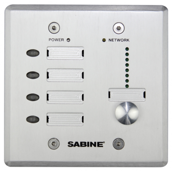 VS4控制器有四個可編程、可選擇開/關按鈕,外加一個獨立的可編程電平控制鍵,安裝在一個2-gang大小的鋁制面板上,帶電源和網絡狀態LED指示燈,音量LED梯度指示燈以及塑料蓋的標簽插槽。