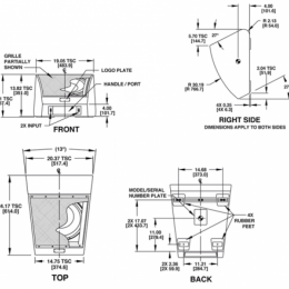 尺寸(英寸/毫米):高度(最小用作舞臺監(jiān)聽):14.10/357.0,寬度(前):14.75/374.6,寬度(后):19.05/483.9,深度:24.17/614.0
