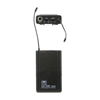 腰包發射機:UHF耐用的塑料外殼1/8鎖定輸入話筒/0分貝/-10dB墊通道選擇器紅外同步瓦特/接收器搭載2節AA電池(約6小時)