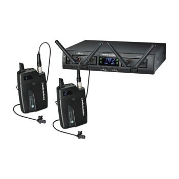 ATW-RC13機架安裝接收器的底盤,ATW-RU13 X2接收單元和ATW-T1001 X2 UniPak發射機MT830cW X2領夾式話筒。