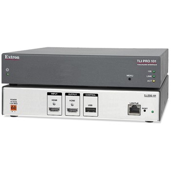 Extron TLI Pro 101 是一款 Touchlink® 接口設備,允許使用第三方觸摸顯示屏作為 Extron Pro 系列控制系統的一個控制點。該獨特的接口包括 1 路具有圖像解析度轉換功能、符合 HDCP 標準的 HDMI 輸入,用于提供視頻預覽。還包括 1 路具有圖像解析度轉換功能的輸出,可支持分辨率從 800600 到 19201200 以及 HDTV 1080p/60 的顯示設備。當 TLI Pro 101 與任何 Extron IP link® Pro 控制處理器配合使用時,可應用第三方觸摸屏設備對廣泛的信號源設備進行完整的交互式控制。