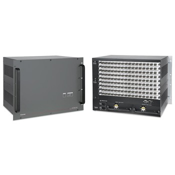 Extron FOX Matrix 14400 是一款高性能、模塊化的光纖矩陣切換器,適用于通過光纖進行完整的、端到端的數字視音頻信號傳輸和路由。該矩陣切換器的尺寸可從 16x16 擴展到 144x144 不等,并且完全兼容 FOX 系列發送器和接收器。它支持分辨率高達 4K 的視頻信號,并可對 DisplayPort、HDMI、DVI、3G-SDI、RGB、高清分量視頻和標清視頻進行高速、全數字的切換。FOX Matrix 14400 具有 Extron 矩陣切換器通常具備的便于集成的特性,加上支持熱插拔的輸入/輸出板和風扇、實時的系統監控以及冗余的熱插拔電源,可以為任何關鍵任務的應用環境提供高可靠性、企業范圍內的光纖視音頻和控制信號的切換。
