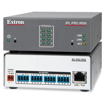 Extron IPL Pro IRS8 是一款緊湊的高性能控制處理器,帶 8 個單向紅外/串行端口。與所有 IP link Pro 控制處理器一樣,IPL Pro IRS8 具有更強的能力、更快的速度和更大的內存。它采用高級安全標準和千兆以太網,確保了在當今網絡結構的基礎上與多個 Touchlink Pro 觸摸屏的兼容性。它可通過 Global Configurator Plus 或 Professional 進行配置,作為單獨的控制處理器應用于系統中。它還可以與其它 IP link Pro 控制處理器級聯成組,通過 Global Configurator Professional 進行配置,以用于更復雜的系統。