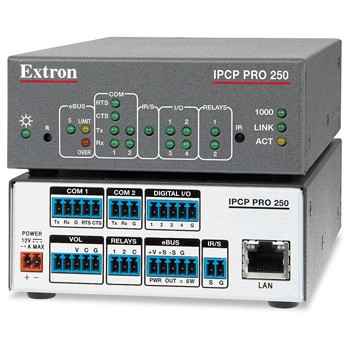 Extron IPCP Pro 250 是一款通用、高性能控制處理器,設計在中小型應用環境中進行集中式視音頻控制。作為最新 IP link® Pro 系列的組成部分,IPCP Pro 250 幾乎在每個方面都設計得更加快速和安全。它采用高級安全標準和千兆以太網,確保了在當今網絡結構的基礎上與多個 Touchlink® Pro 觸摸屏兼容。它還支持 Extron linkLicense?,可使用第三方設備作為主控制界面。IPCP Pro 250 是控制一個視音頻系統內的多個設備和多種信號類型的理想之選。