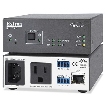 帶有 IP link® 的 Extron IPL T PC1 和 IPL T PC1i 交流電源和設備控制器具有一 個單獨的交流電源插座、雙向 RS-232、紅外輸出和觸點閉合輸入。這兩種型 號均采用 Extron IP link 技術,從而實現靈活、集中、基于 Web 的電源和設備 管理功能。在使用 Edison 插座時,IPL T PC1 可提供 10A、120 VAC 的電源。在 使用 IEC 插座時,IPL T PC1i 可提供 10A、220 VAC 的電源。它們可用于為一 個“被凍結”的視音頻設備循環供電,或者配置為在設定時間開啟或關閉設 備,從而保證安全并節省能源。如希望獲得實時通知,該控制器可以通過編 程設置,在執行每項事件時發出一封相應的電子郵件。