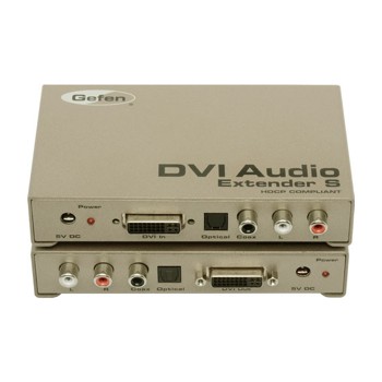 我們的DVI音頻擴(kuò)展器擴(kuò)展你的DVI數(shù)字/模擬音頻到200英尺從您的HDTV DVI或HDMI源使用成本有效的CAT-5電纜。