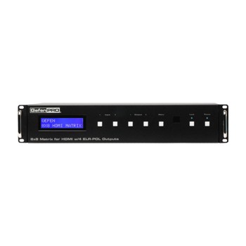 四和四的HDMI輸出ELR航線達八高清源分辨率達到1080P全高清深顏色和多通道數字音頻的任何八個HDTV顯示gefenpro 8x8矩陣,無需斷開和重新連接的HDMI源和顯示。它的特點四顯示高達330英尺(100米)的擴展,使用葛粉的ELR(超長距離)和政治(權力在鏈路)技術。四輸出ELR擴展允許在一個單一的CAT-5E電纜安裝顯示器。無需外部動力油料四包括ELR接收機。的gefenpro 8x8矩陣支持3DTV和先進的數字音頻格式,如Dolby TrueHD和DTS-HD音頻?®。每個源都可以在任何時候從任何顯示通過使用包括紅外遙控,RS-232端口,IP(Telnet和Web GUI),或通過前面板按鈕。