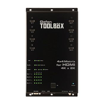 對于HDMI 4Kx2K的gefentoolbox 4x4矩陣是一個小巧輕便的替代安裝在機架上的矩陣。它允許多達四的超高清4K x 2K或1080P全高清片源被路由到四超高清顯示器。該產(chǎn)品支持分辨率高達4K x 2K(3840 x 2160 @ 30Hz)。顏色深,3DTV的經(jīng)過,以及無損音頻格式如LPCM 7.1,Dolby TrueHD和DTS-HD音頻,還支持。每個高清源可以被路由到任何使用前面板按鍵控制所連接的顯示器,包括紅外遙控,RS-232串行控制接口,或通過使用Telnet,IP,UDP,和內(nèi)置的Web服務(wù)器接口。LED指示器頂部面板上顯示當(dāng)前的路由狀態(tài),F(xiàn)ST模式,音頻配置,和EDID設(shè)置。