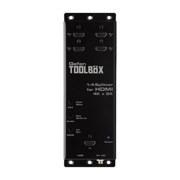 的gefentoolbox 1:4分配器HDMI 4K x 2K超高清分配一個A / V源四超高清顯示的同時,沒有質量或分辨率損失。本產品適用于任何超高清源和支持分辨率高達4K(3840 x 2160 @ 60Hz 4:2:0)和4K影院(DCI)(4096×2160 @ 24或30Hz 4:4:4)。它的特點是快速切換技術,并支持HDCP,顏色深,3DTV的經過,以及無損音頻格式如杜比TrueHD和DTS-HD音頻。