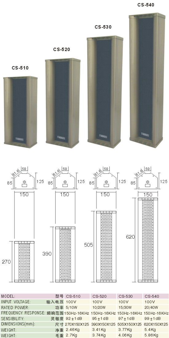 當前位置:首頁 > 商城 > 公共廣播 > 音柱 > 萬聲達 T-Kokopa CS-540 20W/40W室外音柱