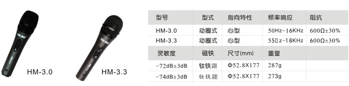 麥克風有動圈式及電容式兩種類型,動圈式以負載于振動膜上的線圈,在高密度的磁場間將聲音能轉換為電能訊號。HM系列麥克風最主要的特點是能展現極為清晰的原音音質,高低頻率響應非常寬廣平坦靈敏度高,指向特性優良,不易嘯叫,動態范圍大,失真率小,體積輕巧耐摔,手感好噪音低等特性Hm咪芯尤為耐用抗摔,是一款與進口的高檔次名話筒完全可媲美的作品。