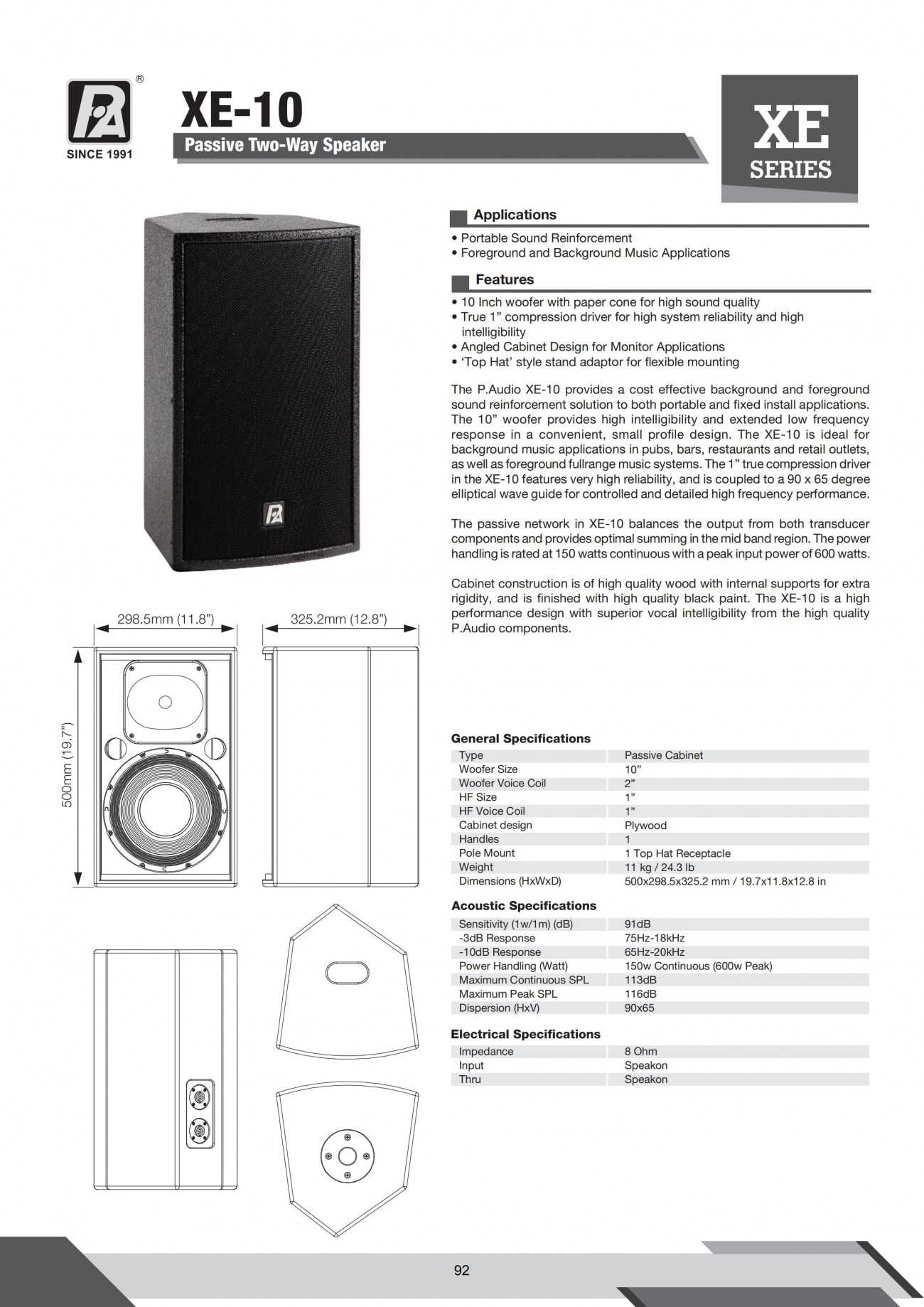 P.Audio XE-15為便攜式和固定安裝應用提供了一個高效擴聲解決方案。在酒吧、會議室、報告廳等場所XE-15是理想選擇。