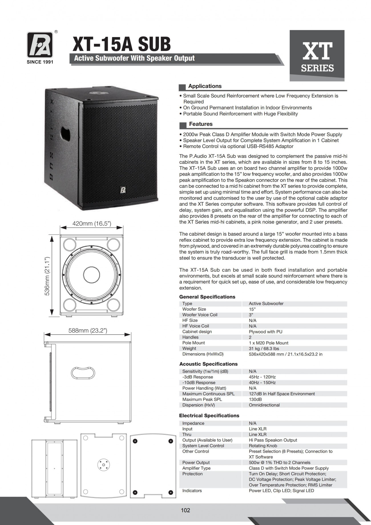 P.AUDIO XT-18A 單18寸超低音箱(有源)