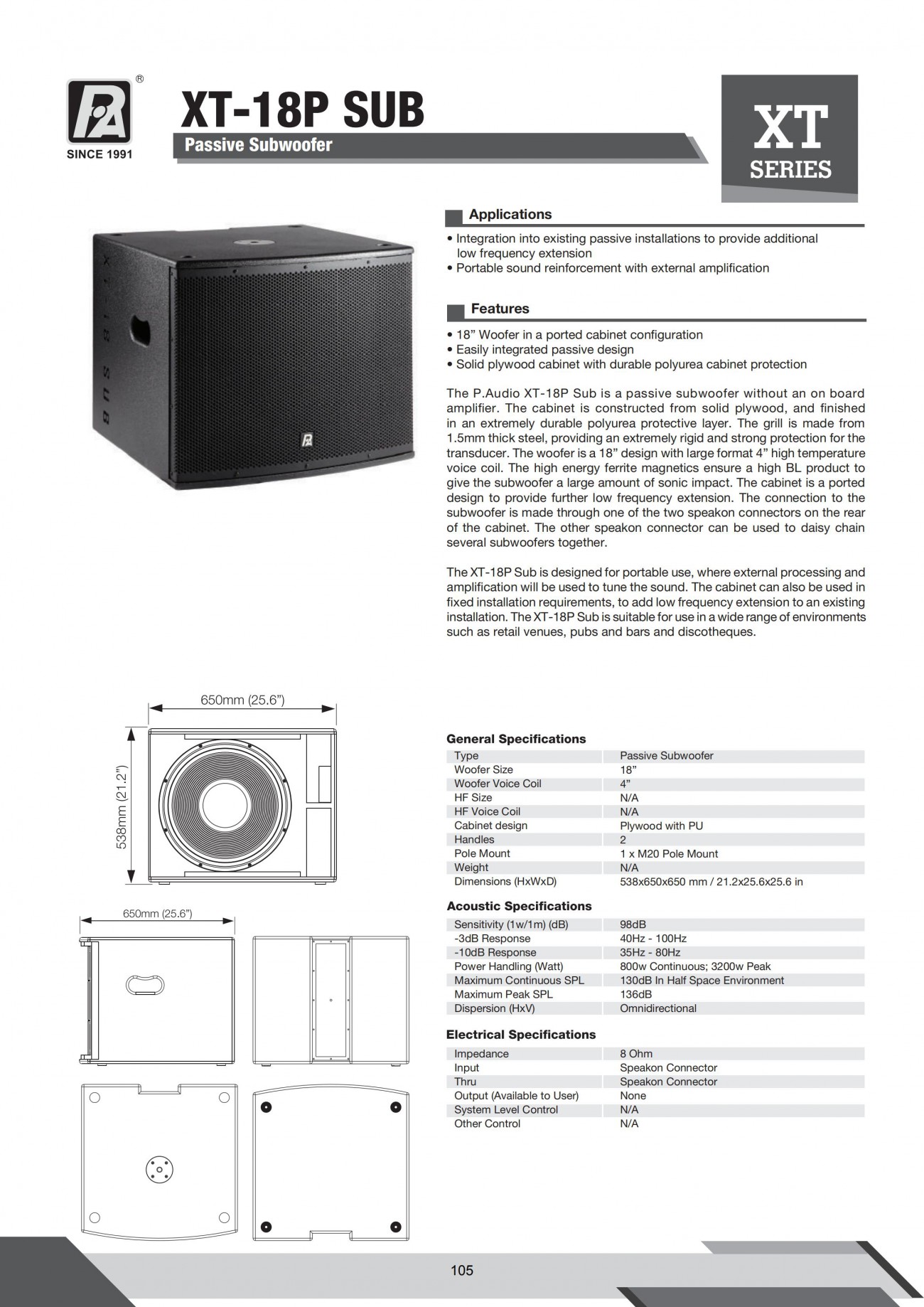 -10dB頻響:65 Hz - 18k Hz