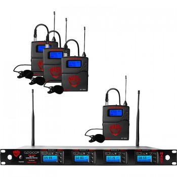 4W-1KU LT無線領(lǐng)夾系統(tǒng)包含1臺4W-1KU雙通道無線接收機,4只BT-1KU腰包式發(fā)射機,4只OLM-4全向形微型領(lǐng)夾話筒。