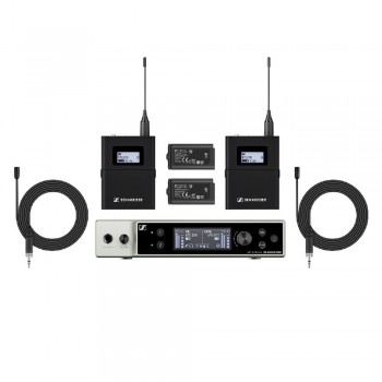 這個組合套裝包含如下: 2個 EW-DX SK (無線腰包發射器), 2個 MKE 2 (全指向領夾麥克風), 1 臺EW-DX EM 2 機架式接收機 (2 通道) 和 2 塊BA 70 可充電電池組