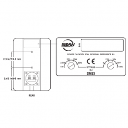 SMS3配套提供可調(diào)節(jié)的壁式安裝支架,使音箱安裝快速高效。4個(gè)M6緊固螺絲提高了音箱的靈活性。連接終端經(jīng)過(guò)顏色編碼并由彈簧承載,適合嵌入式連接。通過(guò)兩個(gè)旋轉(zhuǎn)開(kāi)關(guān)可選擇不同的瓦數(shù)、電壓,以及4Ω旁路模式。箱體使用高密度防刮傷聚苯乙烯材質(zhì)構(gòu)造,并帶有穿孔鋼網(wǎng)罩和其他連接外罩作為保護(hù)罩。SMS3音箱有SMS3黑色版與SMS3W白色版可選。