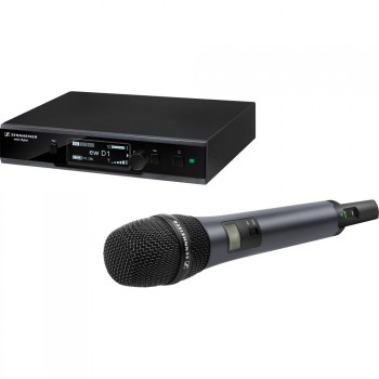 evolution 系列的無線人聲套裝D1 配合可選擇開關靜音功能的e835 心形動圈話筒,適合舞臺演出使用。