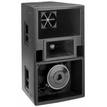 三分頻全頻系統(tǒng),梯形開(kāi)口式音箱,包含1個(gè)15英寸低音單元,箱體開(kāi)口、1個(gè)號(hào)筒負(fù)載的10英寸中頻音圈和1個(gè)1.4英寸開(kāi)口的壓縮驅(qū)動(dòng)單元,由一個(gè)60°×45°恒指向性號(hào)筒負(fù)載。電源模式可由開(kāi)關(guān)切換:雙功放模式(被動(dòng)低頻/中頻分頻器)或三功放模式。