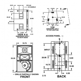 換能器: 低頻 - 1x15英寸錐盆;中頻–1x10英寸錐盆;高頻 – 1x1.4英寸開(kāi)口壓縮驅(qū)動(dòng)在恒定指向性號(hào)角上